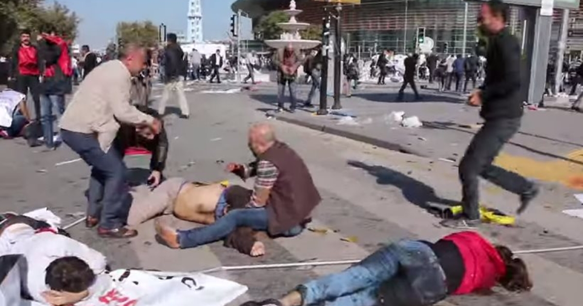 Ενώ ο αριθμός των νεκρών και των τραυματιών από τη διπλή βομβιστική επίθεση την Τουρκία ανεβαίνει, ένα βίντεο το οποίο τραβήχτηκε λίγο μόλις λεπτά έπειτα από τα φονικά χτυπήματα στην Άγκυρα είδε το «φως» της δημοσιότητας, προκαλώντας σοκ, αποτροπιασμό και θλίψη για τα αθώα θύματα που χάθηκαν, ενώ διαδήλωναν για την ειρήνη.