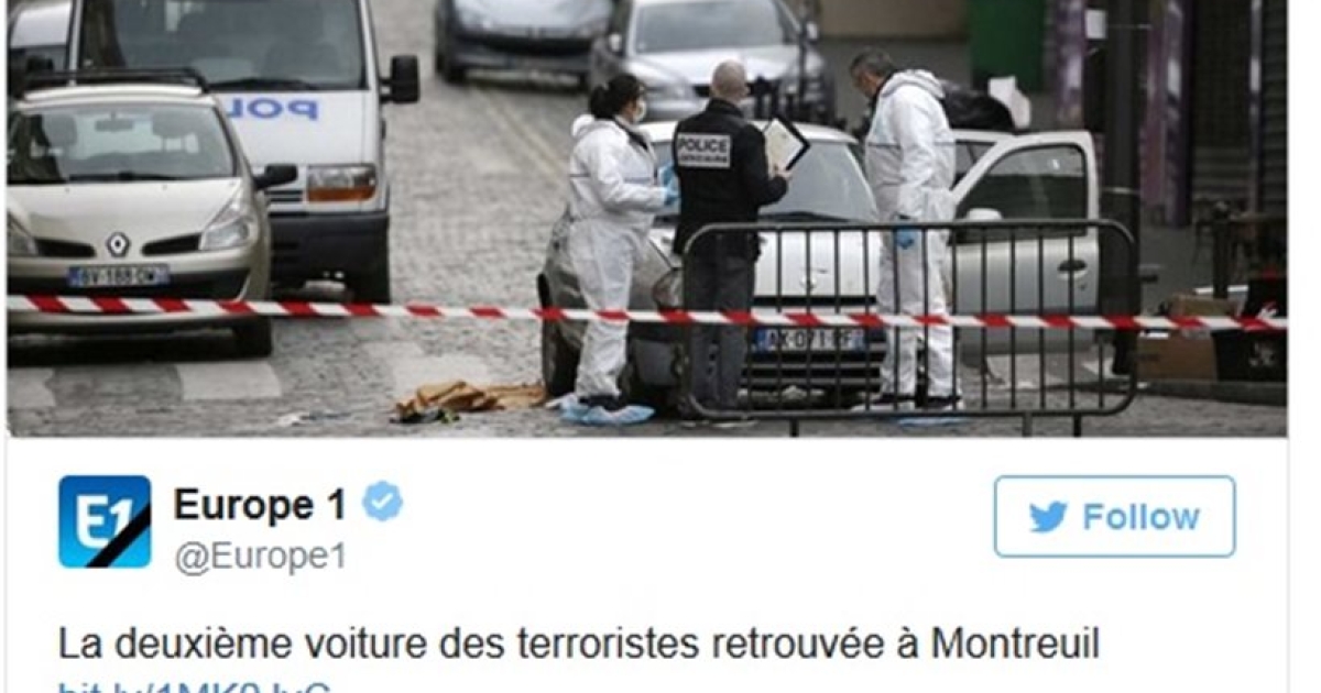 Εντοπίστηκε στο Μοντρέιγ -στα ανατολικά προάστια του Παρισιού- αυτοκίνητο, που χρησιμοποιήθηκε για τις επιθέσεις που έγιναν το βράδυ της Παρασκευής σε δύο εστιατόρια της γαλλικής πρωτεύουσας, όπως μεταδίδει ο «Guardian».