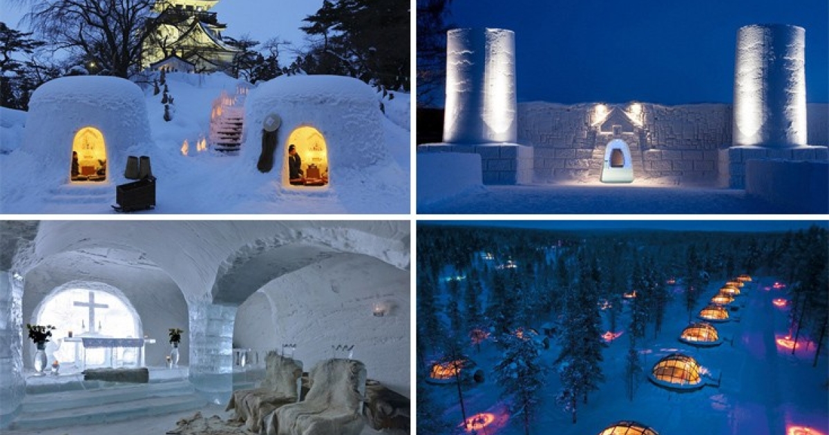 Μπορεί ο καιρός να μη δείχνει πως θα κινηθεί σε αυτή την κατεύθυνση στις γιορτές, υπάρχουν ωστόσο ξενοδοχεία φτιαγμένα μέσα στο χιόνι και τον πάγο που προσφέρουν ξεχωριστές εμπειρίες για εκείνους που τα επισκέπτονται.