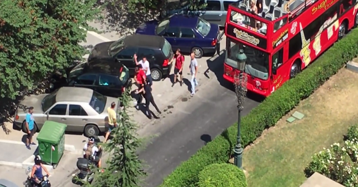 Οδηγός τουριστικού λεωφορείου ήρθε στα χέρια με άλλους άνδρες στην οδό πολύπαθη από θέμα διπλοπαρκαρισμένων αυτοκινήτων, οδό Νίκης στη Θεσσαλονίκη.