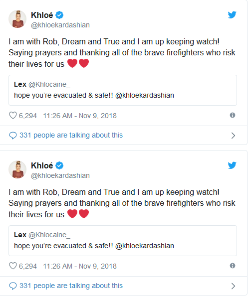 Τέλος, η Κλόε που είχε πρόσφατα επιστρέψει στην Καλιφόρνια μετά από την παραμονή της στο Κλίβελαντ για να είναι κοντά στον σύντροφό της Τρίσταν Τόμσον, δήλωσε επίσης ότι μαζί με το μωρό της, την True, έφυγαν από το σπίτι τους.