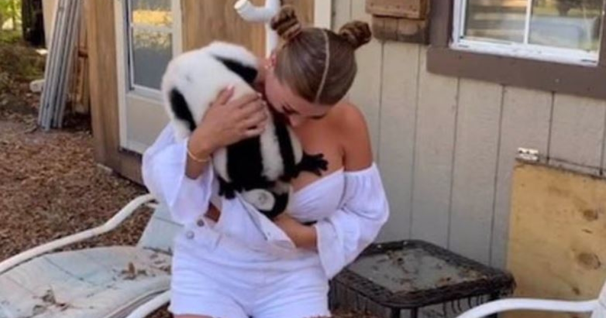 Αυτή τη φορά ήταν ένας λεμούριος, ο οποίος δεν κατάφερε να αντισταθεί και έχωσε την μούρη του στο εσωτερικό της μπλούζας της.