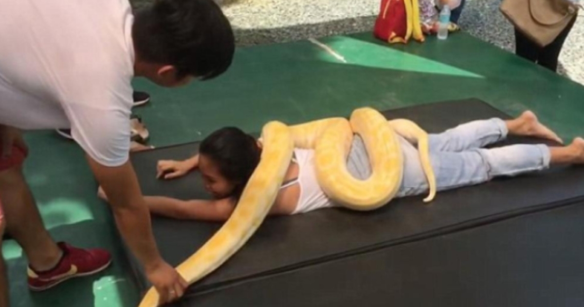Οι τουρίστες που επισκέπτονται τον ζωολογικό κήπο έχουν τη δυνατότητα να απολαύσουν ένα χαλαρωτικό μασάζ με έναν... πύθωνα βάρους (μόλις) 50 κιλών!