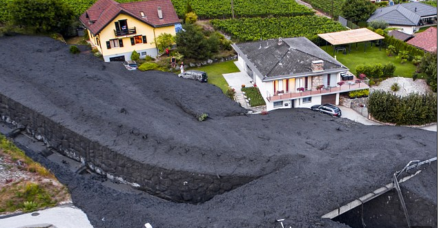 Εικόνες αποκάλυψης κατέγραψε ο τηλεοπτικός φακός στο χωριό Grugnay στην νοτιοδυτική Ελβετία (κοντά στην πόλη Σιόν) όταν ένας ορμητικός χείμαρρος λάσπης «εισέβαλε» σε δρόμους και σπίτια, δημιουργώντας πανικό κι αναστάτωση στους κατοίκους, που άρχισαν έντρομοι να απομακρύνονται από το σημείο.