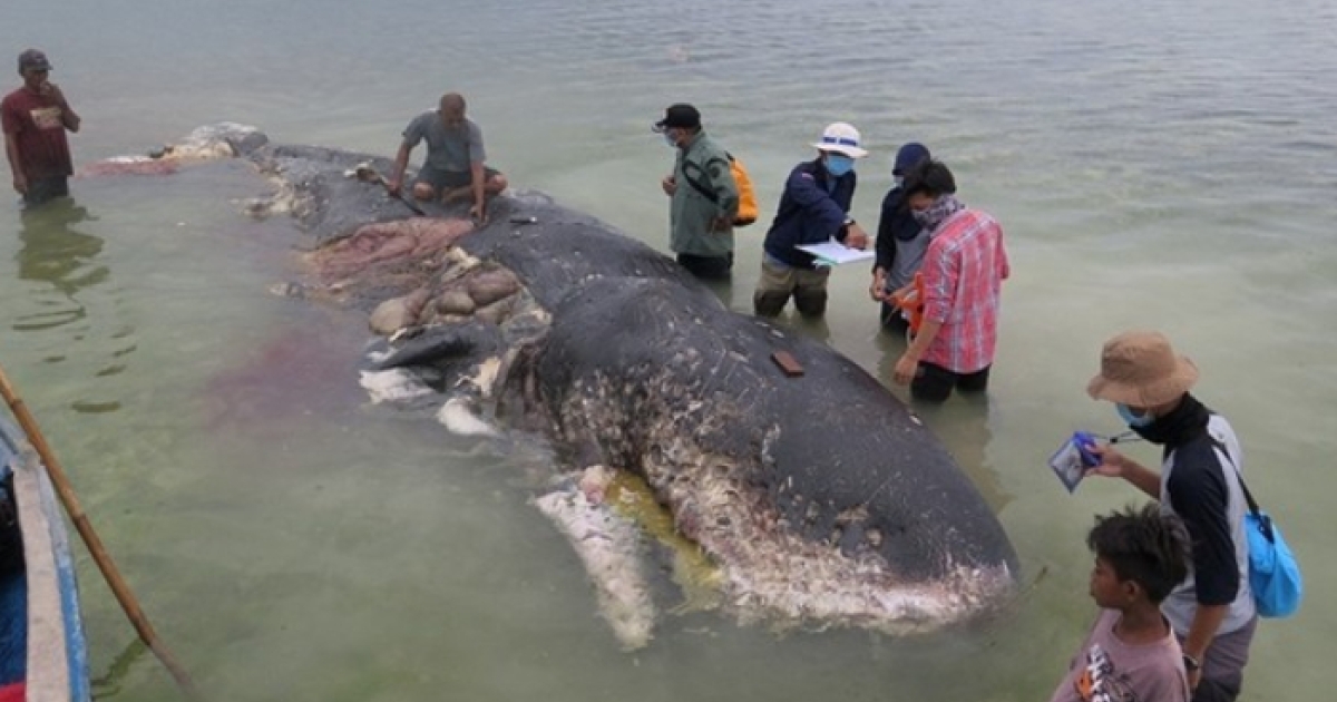 Η φάλαινα μήκους 9,5 μέτρων βρέθηκε στη θαλάσσια περιοχή κοντά στο νησί Κάποτα, τμήμα του Εθνικού Πάρκου Γουακατόμπι, στα νοτιοανατολικά του Σουλαουέζι, αναφέρει σε ανακοίνωσή του το πάρκο.
