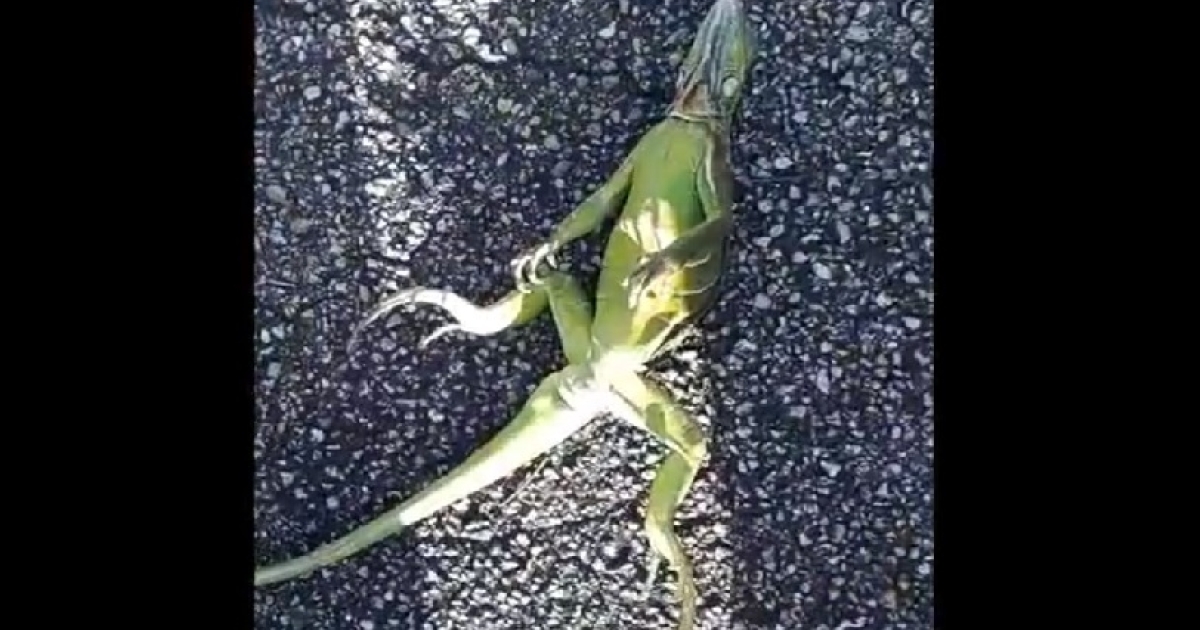 Τρομερό βίντεο, με έναν άνδρα να σώζει παγωμένο ιγκουάνα, που είχε παραλύσει και γυρίσει ανάποδα στο οδόστρωμα!