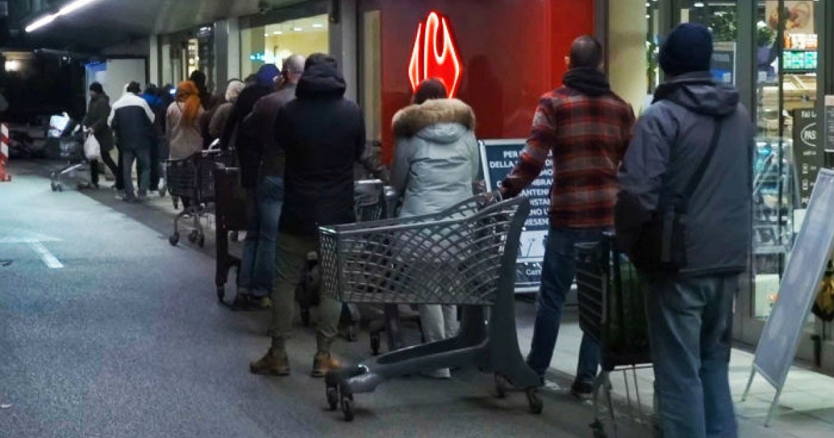 Μεγάλες ουρές έχουν σχηματισθεί έξω από τα ιταλικά σούπερ μάρκετ, λόγω των νέων έκτακτων μέτρων για τον κοροναϊό, τα οποία από χθες βράδυ επεκτάθηκαν σε όλη την χώρα.