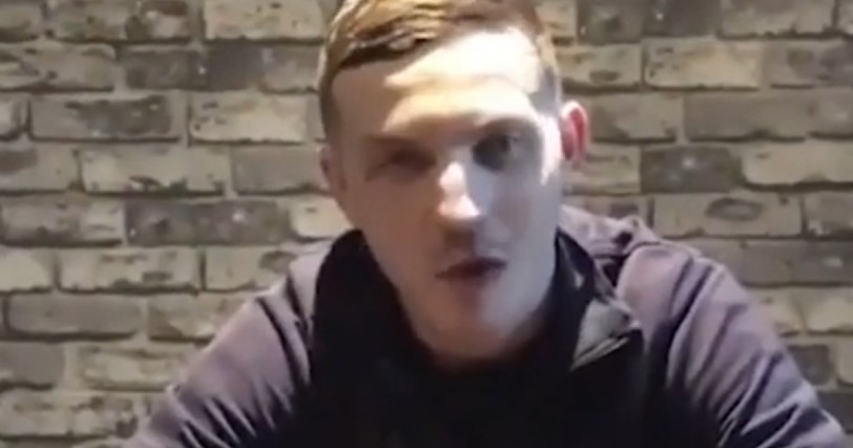 Μιλώντας στην κάμερα και μασώντας παράλληλα, χλευάζει την αστυνομία αφού κατάφερε να ξεφύγει και δείχνει τις σπασμένες χειροπέδες.