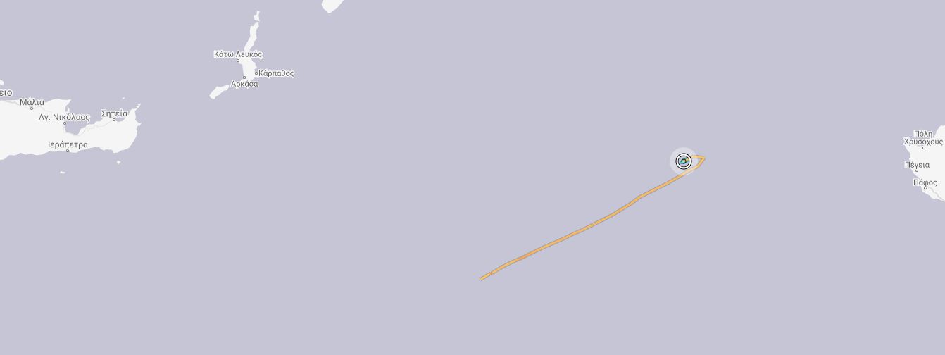 Το πλοίο, όπως φαίνεται στα ραντάρ, κινείται με ταχύτητα 4,6 κόμβων νοτιοδυτικά, με πορεία προς την θαλάσσια περιοχή που βρισκόταν πριν δύο ημέρες, εντός ελληνικής υφαλοκρηπίδας.