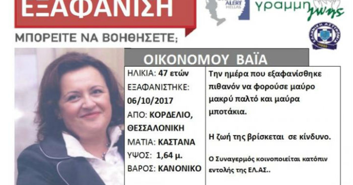 Φόβους για το χειρότερα εξέφραζαν όμως και οι συγγενείς της, καθώς η 47χρονη ήταν μητέρα ενός εξάχρονου παιδιού, το οποίο όπως έλεγαν υπεραγαπούσε και δεν θα το άφηνε μόνο, αν δεν της είχε συμβεί κάτι κακό.