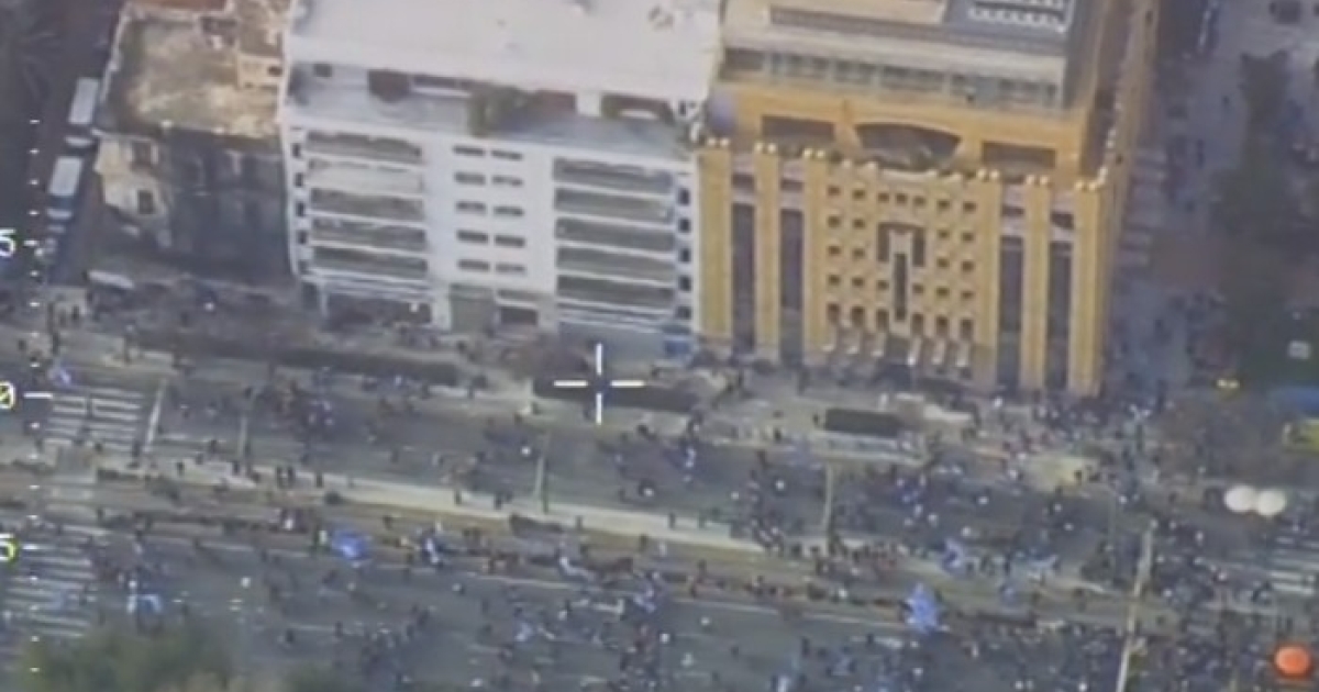 Πλάνα της μεγάλης συγκέντρωσης από το ελικόπτερο της αστυνομίας...