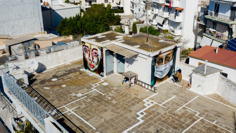 Κορονοϊός: Εντυπωσιακό γκράφιτι σε ταράτσα της Αθήνας (pics)