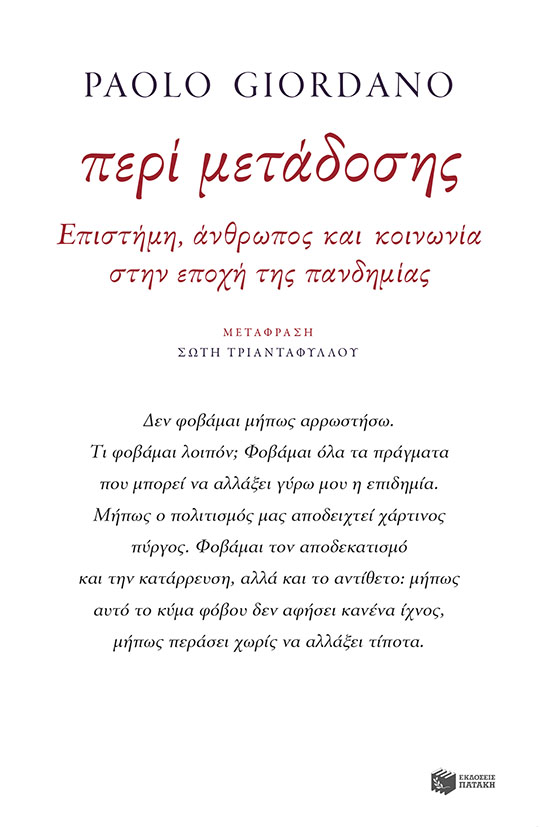 Ο Τζορντάνο δεν περιορίζεται στην επισήμανση των κινδύνων της μόλυνσης: μιλάει για τους οικονομικούς και τους ταξικούς περιορισμούς που ισχύουν για κάθε προσπάθεια και μέτρο προφύλαξης (αλλιώς προστατεύονται οι ευημερούντες και αλλιώς εκτίθενται οι παρεμποδισμένοι και οι αδύναμοι) και τονίζει τον ρόλο της παγκοσμιοποίησης σε πανδημίες όπως ο κορονοϊός. Πανδημίες βασάνιζαν ανέκαθεν την ανθρωπότητα, αλλά η εποχή μας μοιάζει ιδιαιτέρως ευάλωτη τόσο ως προς την ταχύτητα και τον ρυθμό της μετάδοσης όσο και ως προς το μέγεθος της εξάπλωσής τους. Οι ιοί ταξιδεύουν στις ημέρες μας με το αεροπλάνο και κανένας δεν είναι σε θέση να τους βάλει φρένο. Κι επειδή τα όσα λέγονται και γράφονται, παγκοσμίως και εν Ελλάδι, για ιούς οι οποίοι παρήχθησαν σε ερευνητικά εργαστήρια, και οι οποίοι για κάποιους λόγους (περισσότερο ή λιγότερο συνωμοσιολογικούς) ξέφυγαν από αυτά, ανήκουν στη σφαίρα της επιστημονικής φαντασίας, ο Τζορντάνο υπενθυμίζει τις σοβαρές οικολογικές διαταραχές που υπέστη ο πλανήτης τις τελευταίες δεκαετίες (φονικές πυρκαγιές και μαζικός αφανισμός των ζώων αποτελούν μόνο τα πολύ πρόσφατα παραδείγματα). Και υπό αυτή την έννοια, ας έχουμε μονίμως κατά νουν πως οι μικροοργανισμοί είναι έτοιμοι να ανοίξουν τον δρόμο για το κακό με την πρώτη ευκαιρία. Ο ιός, ο οποιοσδήποτε ιός, δεν χρειάζεται να κατασκευαστεί σε εργαστήριο. Η φυσική διαταραχή, η οποιαδήποτε διαταραχή, φτάνει για να τον εκθρέψει και να τον στρέψει ασυγκράτητο εναντίον μας.