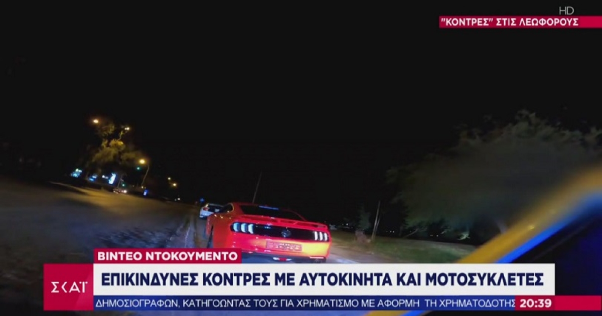Εικόνες που κόβουν την ανάσα από κόντρες με αυτοκίνητα και μοτοσυκλέτες κατέγραψαν οι αστυνομικοί, και μετέδωσε ο ΣΚΑΪ στο κεντρικό του δελτίο ειδήσεων, απόψε (20/6).