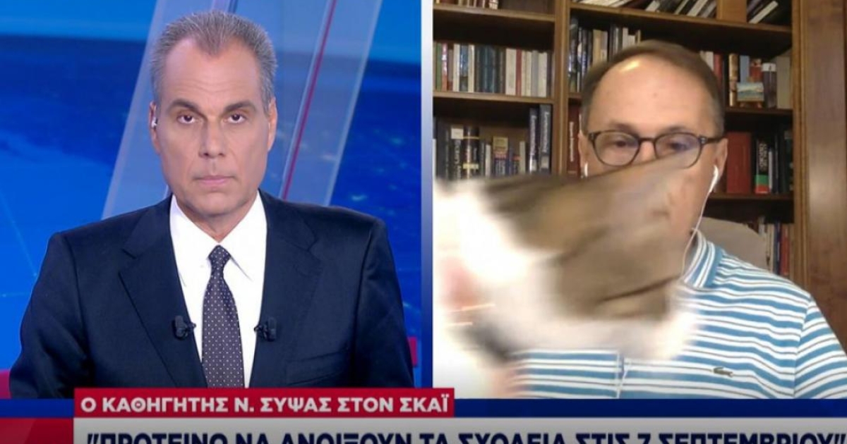 Ο καθηγητής Νίκος Σύψας κλήθηκε να μιλήσει για το άνοιγμα των σχολείων, όμως την ώρα που το έκανε η γάτα του πήδηξε στο γραφείο του περνώντας μπροστά και από την κάμερα. Ο καθηγητής την απόμακρυνε άμεσα, ενώ εκείνη διαμαρτυρήθηκε, νιαουρίζοντας.