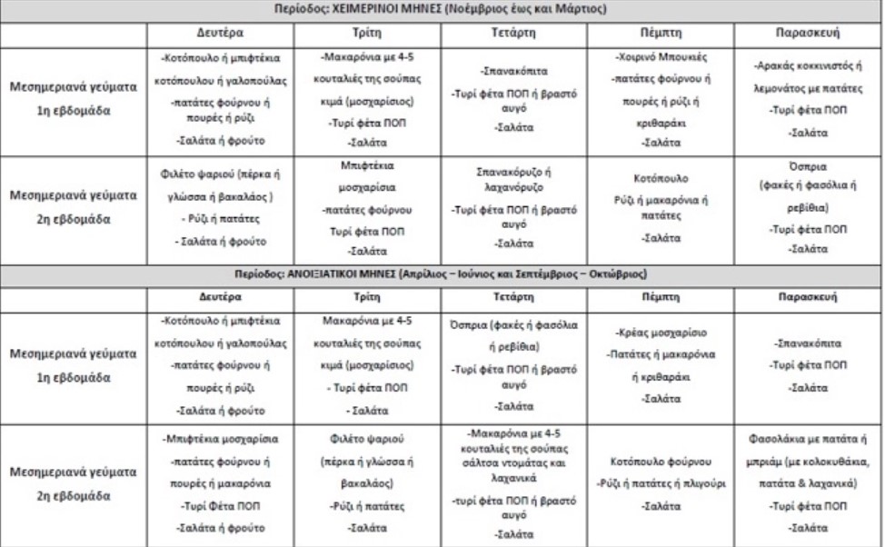 Αυτά είναι τα γεύματα που θα τρώνε οι μαθητές στο σχολείο (pic)