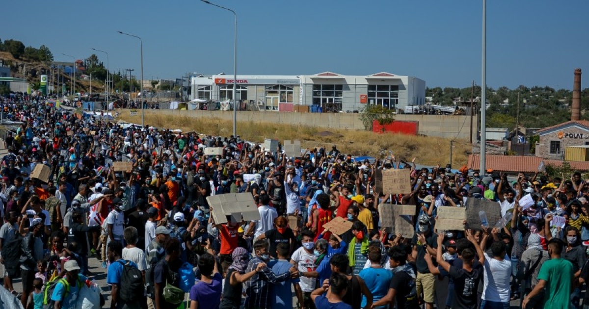 Συγκέντρωση διαμαρτυρίας κάνουν αυτή την ώρα εκατοντάδες μετανάστες και πρόσφυγες που έμεναν στον καταυλισμό της Μόριας.