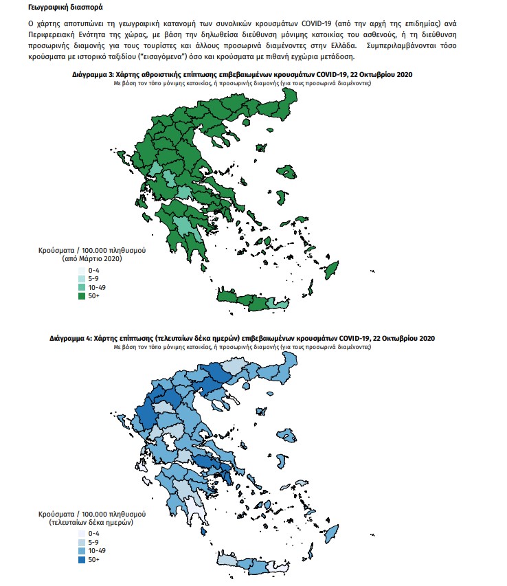 - 188 κρούσματα από Π.Ε. Θεσσαλονίκης, εκ των οποίων 15 συνδέονται με γνωστές συρροές, ενώ 19 αναφέρουν επαφή με επιβεβαιωμένο κρούσμα