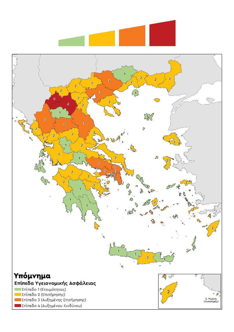 - 2 Περιφερειακές Ενότητες στο επίπεδο 4( Αυξημένου Κινδύνου) καμία περιοχή δεν ήταν σε αυτό το βαθμό συναγερμού πριν 14 μέρες.
