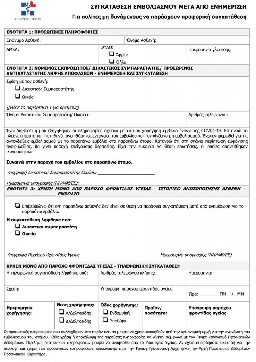 Κορονοϊός: Αυτό είναι το έντυπο συναίνεσης για τον εμβολιασμό