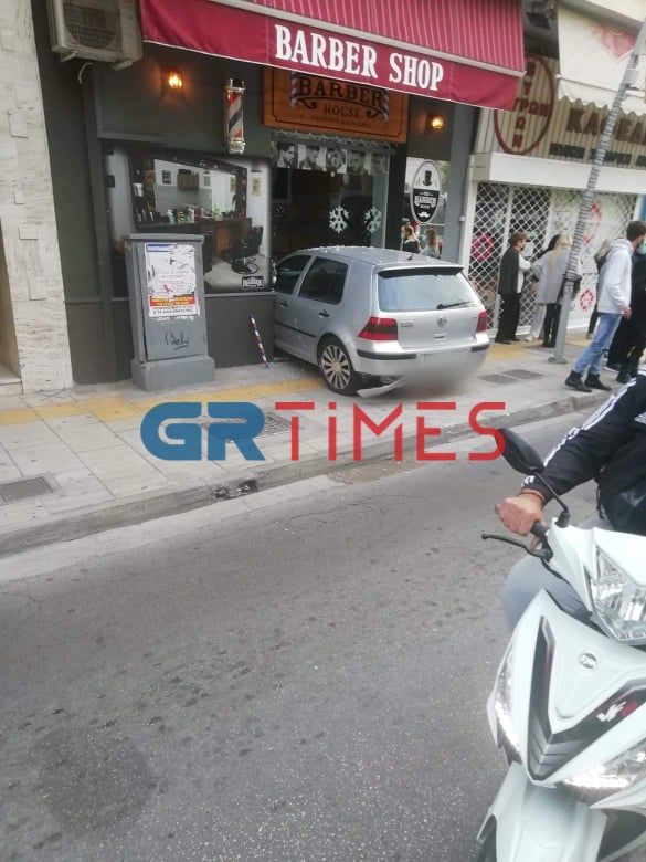 Το αυτοκίνητο σχεδόν μπήκε μέσα στο μπαρμπέρικο, το οποίο ευτυχώς ήταν κλειστό.