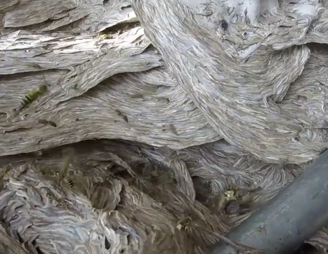 «Εξολοθρευτές» ισοπεδώνουν τεράστια σφηκοφωλιά σε μέγεθος αποθήκης (pics & vid)