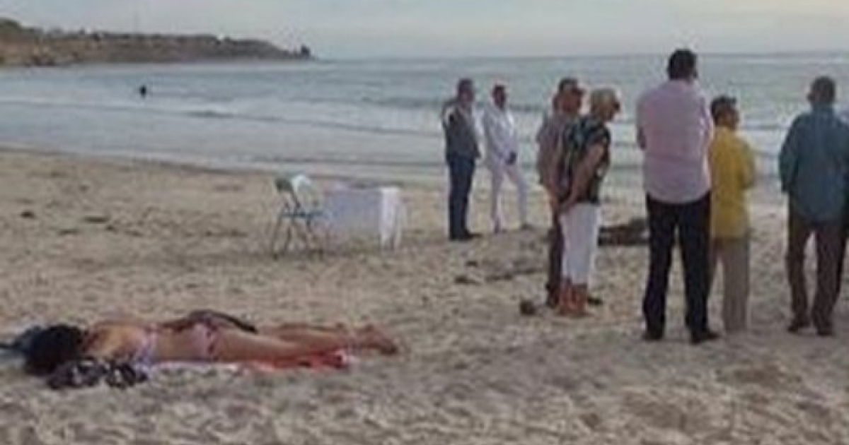 Μία γυναίκα βλέπετε... είχε επιλέξει να κάνει ηλιοθεραπεία δίπλα από το σημείο που τελέστηκε το μυστήριο.