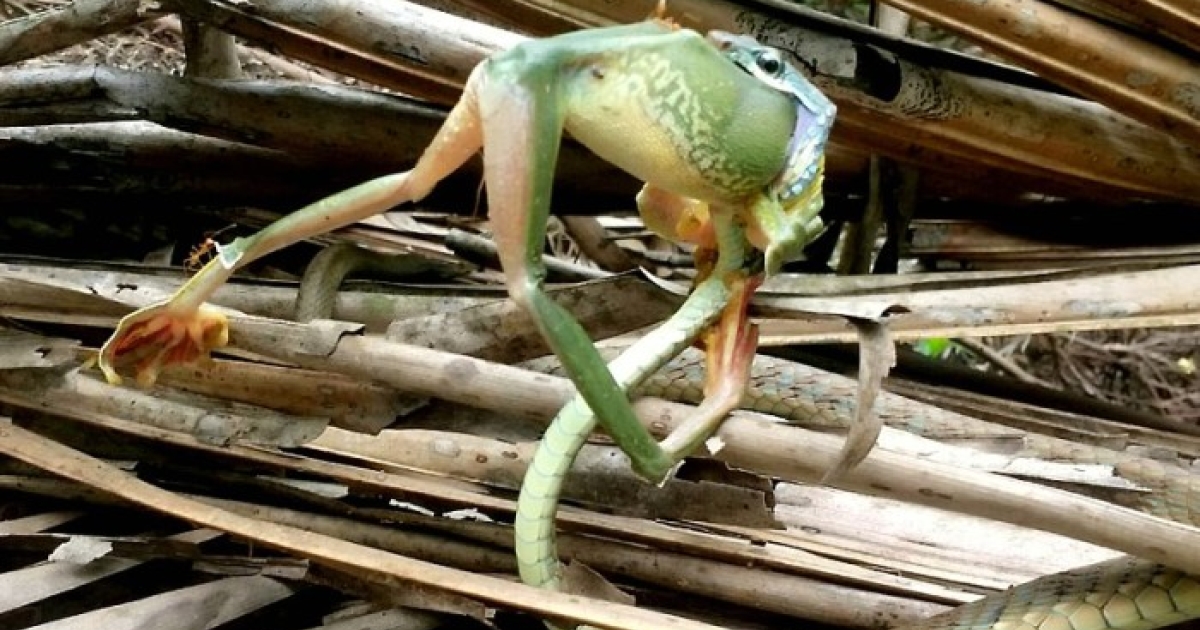 Ένα μικροσκοπικό φίδι... τα έβαλε με τεράστιο βάτραχο και κέρδισε (pics)