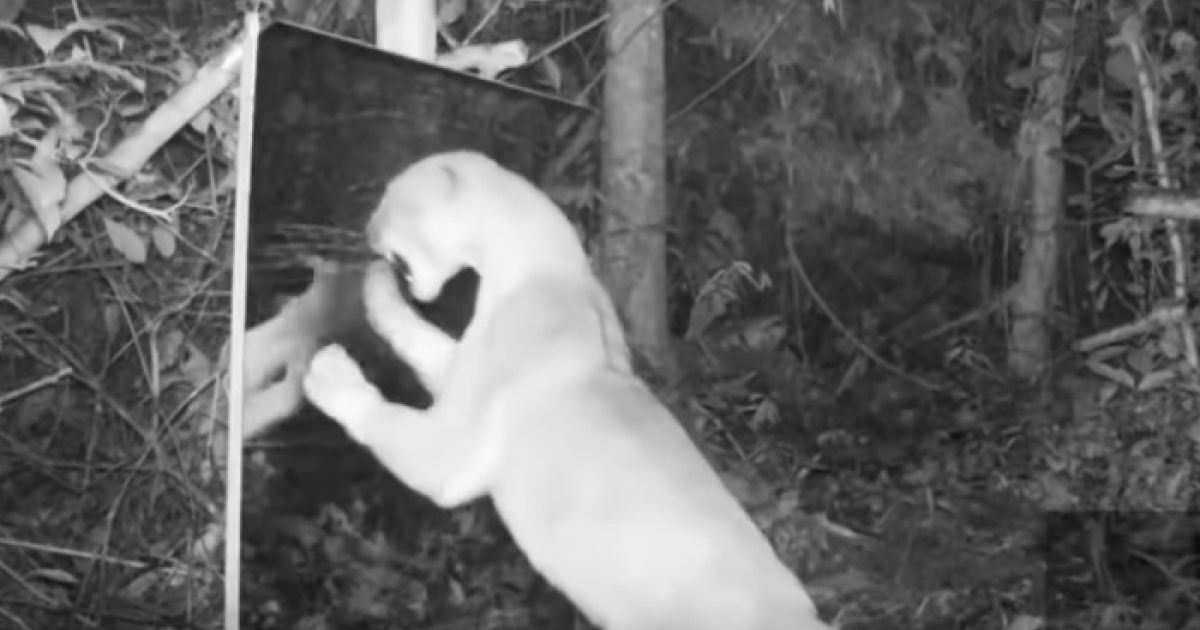 Ο Μαρκ Φένρλι αποφάσισε να στερεώσει έναν μεγάλο καθρέφτη σε αρκετά σημεία των αχανών δασών της περιοχής και να καταγράψει με κρυφές κάμερες τις αντιδράσεις των ζώων, με τα αποτελέσματα που αποτυπώνονται στο βίντεο του National Geographic να είναι καταπληκτικά.