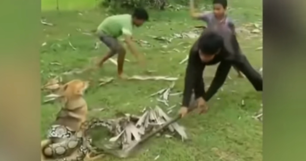 Φοβερή μάχη ανήλικων μαθητών με τεράστιο πύθωνα που είχε αρπάξει τον σκύλο τους (vid)