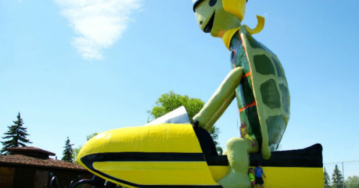 Ο Τόμι η Χελώνα έχει ύψος εννιά μέτρα και κάτι. Και οδηγεί το πιο μεγάλο σνόουμομπιλ στον κόσμο (με μήκος λίγο μικρότερο από 10 και μισό μέτρα). Υποτίθεται ότι είναι σύμβολο των Turtle Mountains τα οποία εκτείνονται σε αυτό το σημείο της Πολιτείας.