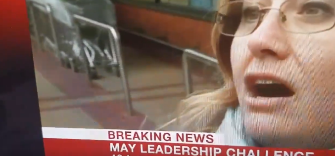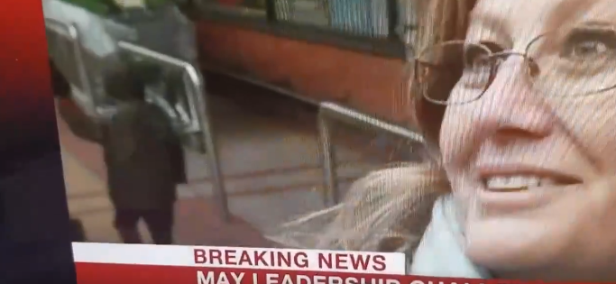 Μία γυναίκα λέει τη γνώμη της στο BBC για τις πολιτικές εξελίξεις. Ξαφνικά, ενώ όλα φαίνονται φυσιολογικά στη σύνδεση στο πλάνο μπαίνει ένα παιδάκι σαν να γίνεται... τηλεμεταφορά.