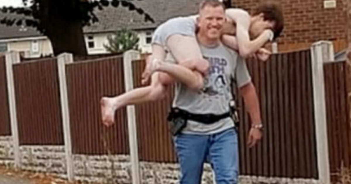 Αστυνομικός κουβαλάει στους... ώμους του ημίγυμνο ύποπτο για εμπόριο ναρκωτικών (pic)