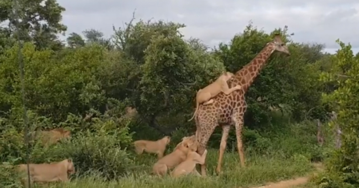 Πιο συγκεκριμένα, το ζώο βρέθηκε σε εξαιρετικά δυσχερή θέση, καθώς ένα από τα λιοντάρια κατάφερε να αναρριχηθεί στην ράχη της, ενώ τα υπόλοιπα λιοντάρια της αγέλης προσπαθούσαν να την ακινητοποιήσουν δαγκώνοντας τους τένοντες των κάτω άκρων.