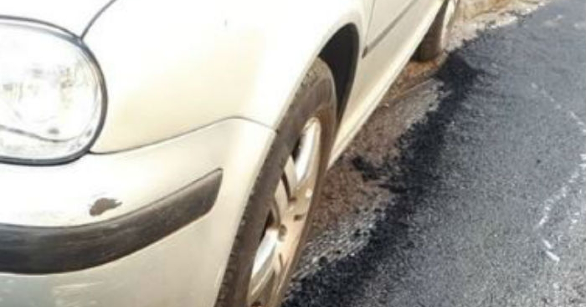 Σημειώνεται ότι και άλλο ένα αμάξι καταλάμβανε ένα μικρό τμήμα του δρόμου με αποτέλεσμα να χρειαστεί να το… σπρώξουν για να μπορέσει να γίνει η ασφαλτόστρωση όσο καλύτερα γίνεται.