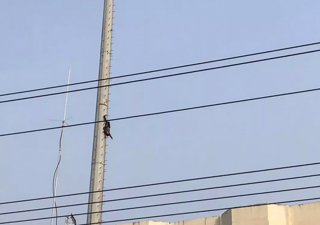 Μεθυσμένος άντρας βρέθηκε κρεμασμένος ανάποδα σε κολώνα 30 μέτρων (pics)