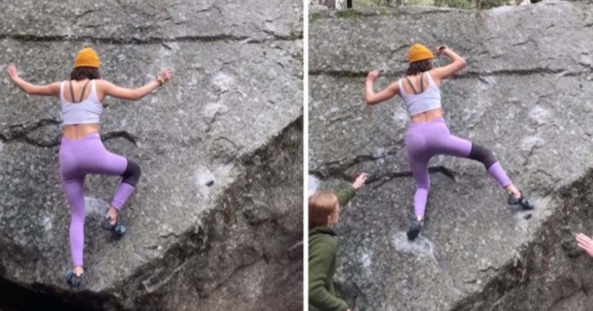 Μία ριψοκίνδυνη κοπέλα ανέβηκε έναν τεράστιο βράχο, χωρίς να χρησιμοποιήσει τα χέρια της.