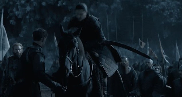 Και πάμε τώρα στον Jon Snow, ο οποίος την ώρα που ανεβαίνει σε ένα άλογο, το σπαθί του παίρνει μία παράξενη καμπύλη που δείχνει πως δεν είναι πραγματικό, αλλά λαστιχένιο.