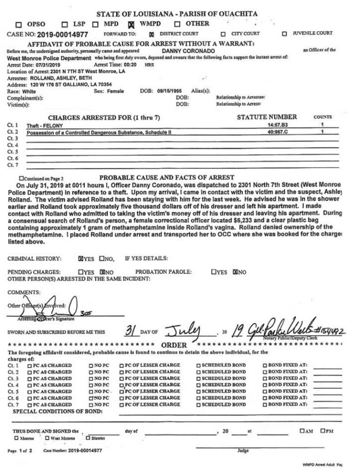 Μάλιστα είχε πει οτι δράστης ήταν η Άσλεϊ Ρόλαντ, με την οποία έμεναν μαζί για μία εβδομάδα.