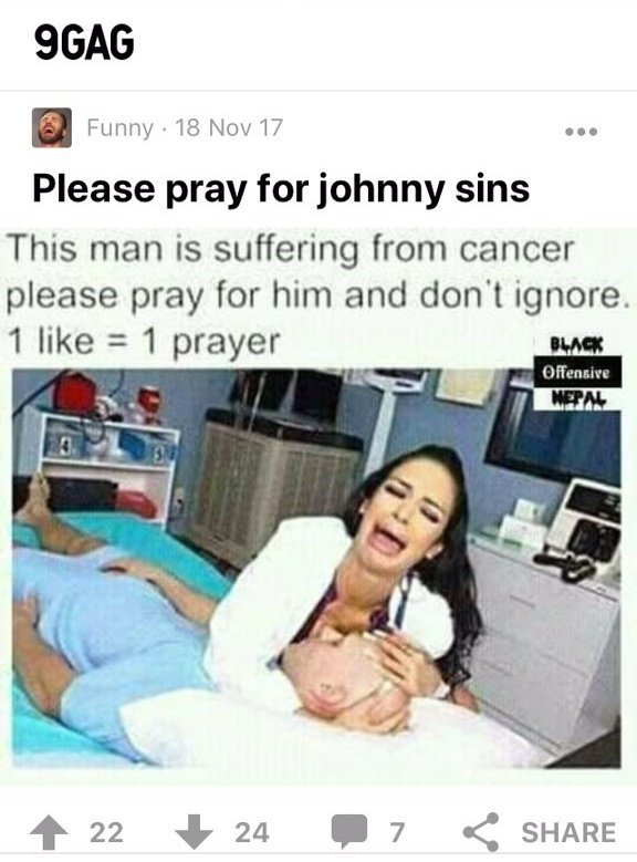 Από το timeline του Αμπντούλ Μπασίτ στο Twitter πέρασε ένα ποστάρισμα με τον πασίγνωστο πορνοστάρ Johnny Sins στο νοσοκομείο και μία συνάδεφό να κλαίει πάνω από το κεφάλι του.