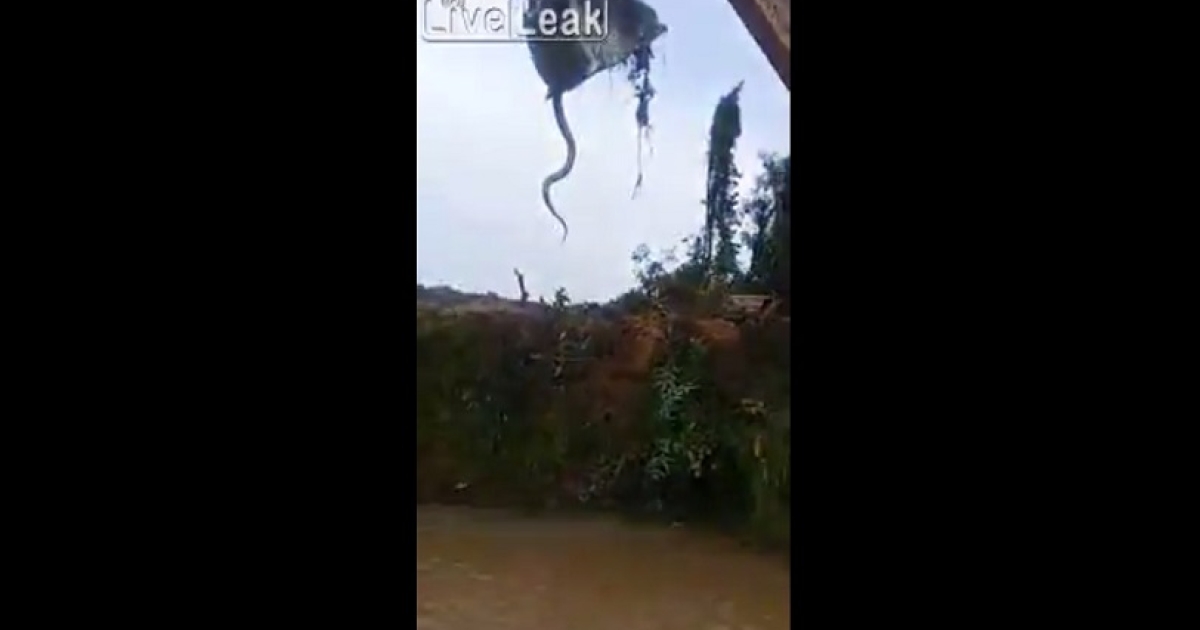 Εκσκαφέας σκάβει σε όχθη ποταμού και βγάζει ένα τεράστιο φίδι (vid)