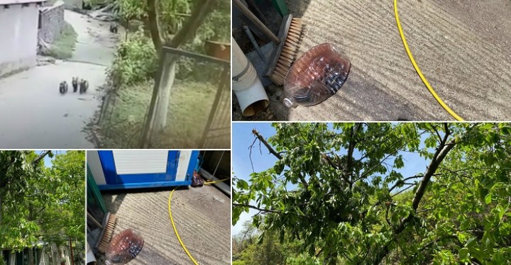 Τα τρία μικρά που ήταν μαζί με την μαμά τους, μπήκαν σε ένα κτήμα και άρχισαν να απολαμβάνουν τα κεράσια που υπήρχαν εκεί.