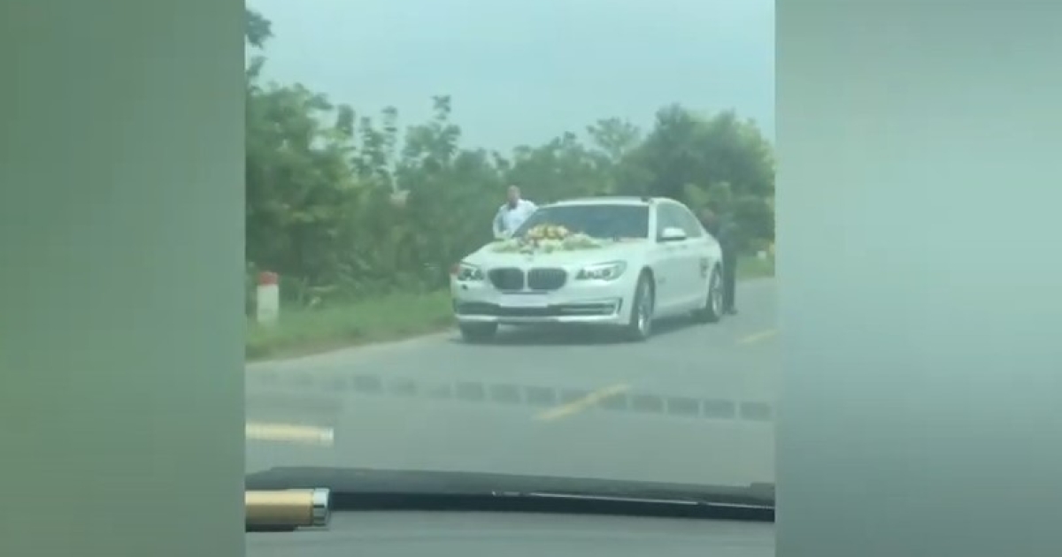 Συγκεκριμένα ένας γαμπρός στο Ανόι του Βιετνάμ δεν έφτασε ακριβώς με τον... παραδοσιακό τρόπο αλλά σπρώχνοντας το αυτοκίνητο.