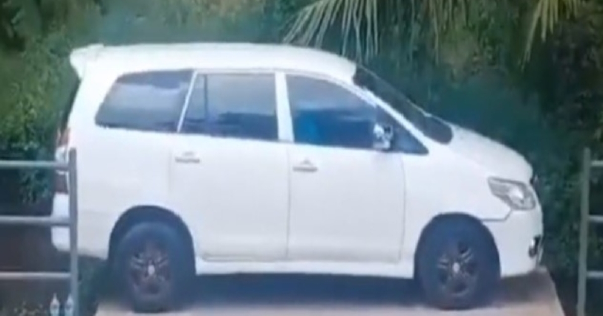 Το λευκό αυτοκίνητο, όπως φαίνεται και στο βίντεο, είναι παρκαρισμένο σε ένα απίστευτο σημείο. Μπροστά και πίσω είναι χαντάκι και ανάμεσα έχει κάγκελα.