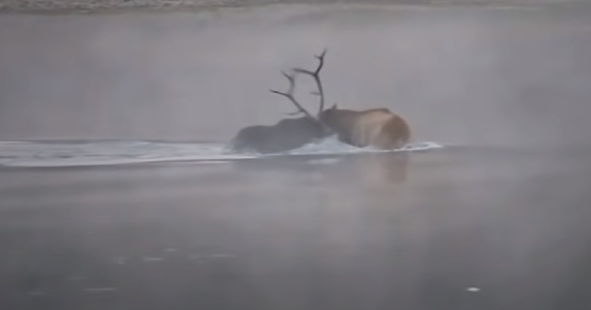 Η στιγμή της μάχης μια αρκούδας με έναν τάρανδο έχει καταγραφεί σε βίντεο στο Εθνικό Πάρκο "Yellowstone" των ΗΠΑ.
