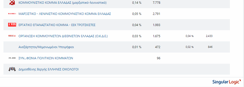 Ο Δημοσθένης Βεργής και το κόμμα του «Έλληνες Οικολόγοι» δεν έλαβε ούτε μία ψήφο στις εκλογές της 7ης Ιουλίου, μετά και την ενσωμάτωση του 100% των ψήφων.