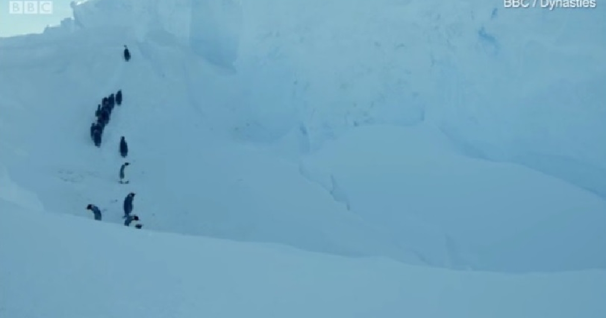 Πέρυσι, είχε γίνει ολόκληρο θέμα η απόφαση του Νο. 1 κάμεραμαν του Attenborough να παρέμβει και να σώσει αρσενικούς αυτοκρατορικούς πιγκουίνους και τα μικρά τους, που είχαν εγκλωβιστεί σε παγωμένη χαράδρα στην Ανταρκτική.