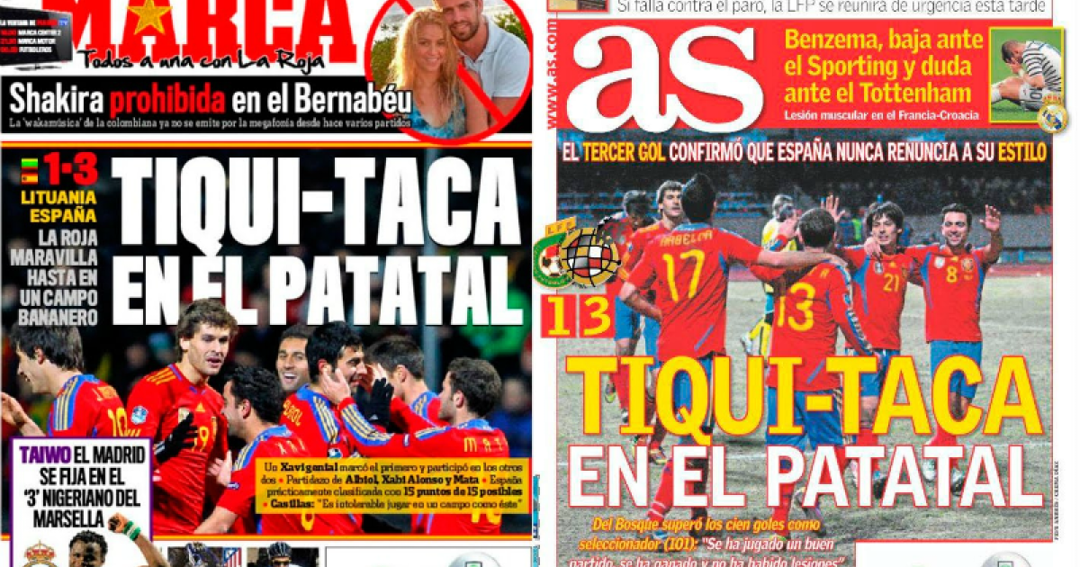 Σίγουρα αυτό που παίζουν δεν έχει την ταχύτητα του ολλανδικού παιχνιδιού με τους εξτρέμ, στερείται της δύναμης του αγγλικού physical game και απέχει από τον γερμανικό ορθολογισμό της ελεγχόμενης επίθεσης. Ωστόσο, αυτό το ενίοτε κουραστικό για τον φίλαθλο παιχνίδι, αυτός ο μονόλογος του «tiqui taka», είναι ό,τι πιο κοντά στο ολοκληρωτικό ποδόσφαιρο των Οράνιε που δίδαξε κάποτε ο Ρίνους Μίχελς, με τη διαφορά όμως ότι οι Ισπανοί στο τέλος το συνδυάζουν και με τις μεγάλες κούπες που εκείνη η παρέα του Γιόχαν Κρόιφ δεν μπόρεσε να κερδίσει ποτέ.