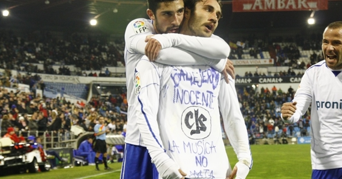 Σαραγόσα-Λεβάντε για το Copa del Rey. Ο Φάμπιο Σουκουλίνι ανοίγει το σκορ και πανηγυρίζει με ένα... περίεργο μπλουζάκι: «Οι Callejeros είναι αθώοι, η μουσική δεν σκοτώνει». Διαβάστε στο gazzetta.gr την ιστορία του μηνύματος!