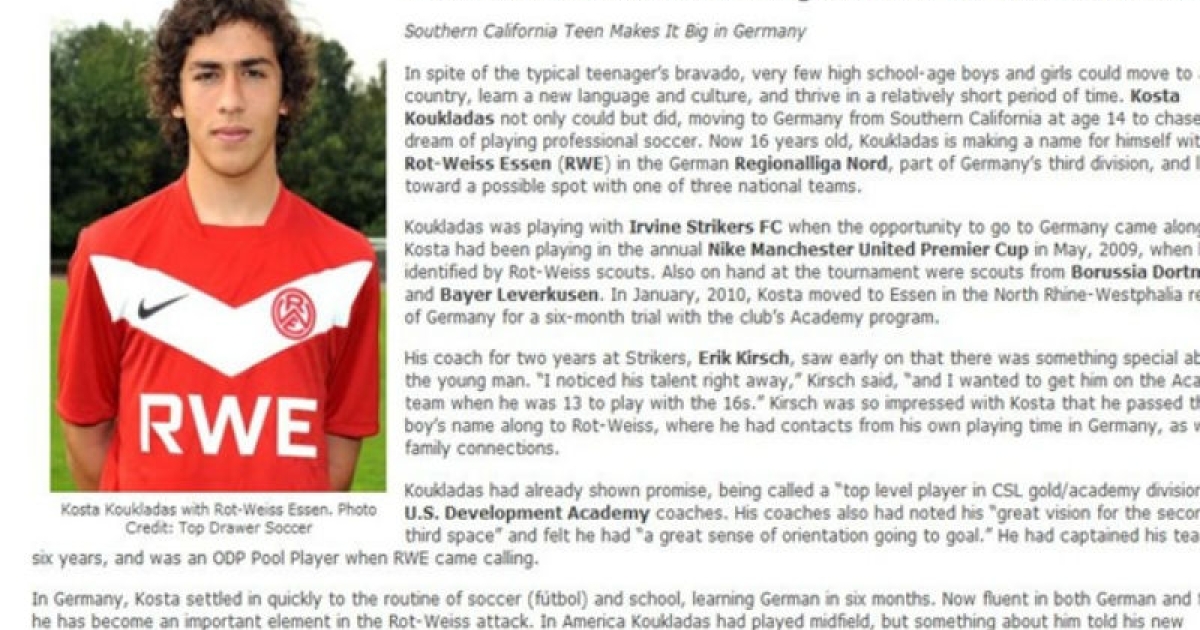 Στη Γερμανία προσαρμόστηκε πολύ γρήγορα, έμαθε τη γλώσσα μέσα σε έξι μήνες και απ' τη μεσαία γραμμή όπου αγωνιζόταν, τώρα βρίσκεται στην κορυφή της επίθεσης, θέση που φαίνεται να του ταιριάζει απόλυτα. «Έχω την ευκαιρία να μάθω απ' τους καλύτερους. Κάνω κάθε μέρα αυτό που αγαπάω», δήλωσε πρόσφατα ο 16χρονος ποδοσφαιριστής κι εμείς δεν έχουμε παρά να ευχηθούμε να τον δούμε με τα χρώματα της «γαλανόλευκης» σύντομα, αν τελικά πρόκειται όντως για ένα τόσο εξαιρετικό ταλέντο.
